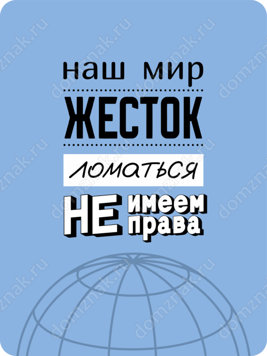 Табличка «Наш мир жесток ломаться не имеем права»